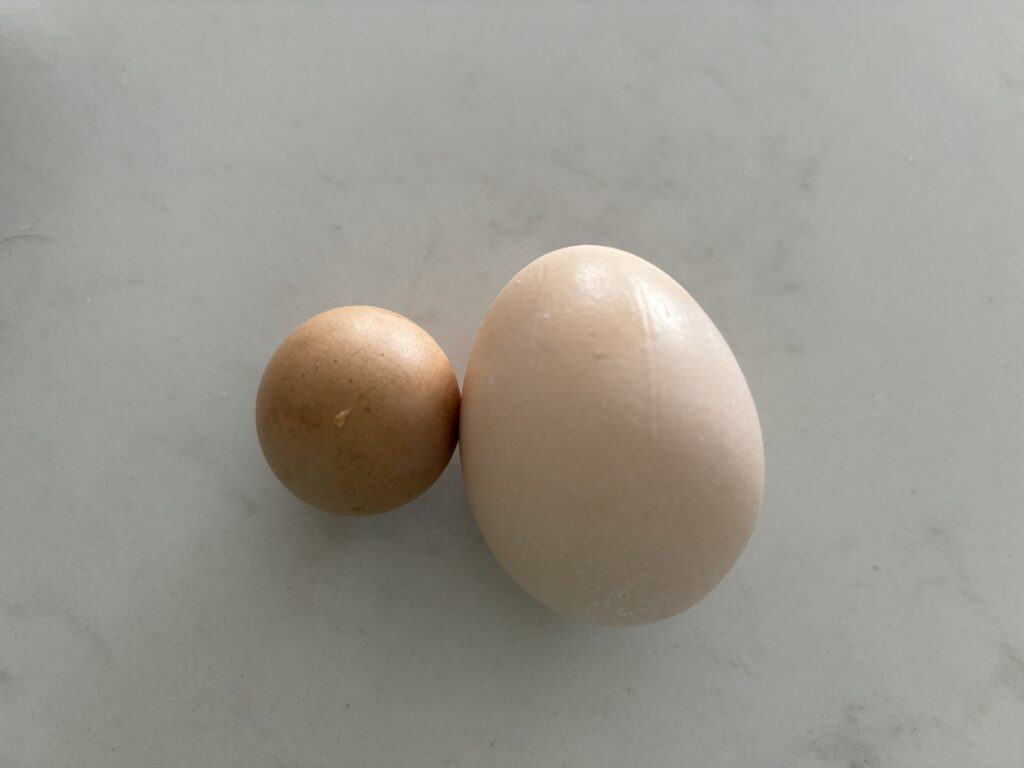 So the main reason for a young chicken laying tiny eggs is just well – age! Hens new to the laying game often produce smaller eggs than their elder sister chickens of the same breed. Young hens are still developing, and their bodies are adjusting to this egg-laying gig. It is common for the new hen to produce a fairy egg or few too. Pretty much all my hens laid a small egg their first time (see image below of Harriet’s first egg)